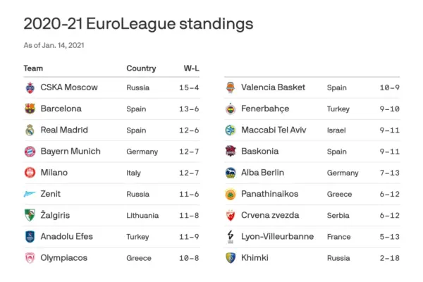 Επίσημη Βαθμολογία Euroleague 2023-2024